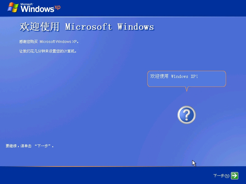 一般到了这里,我直接冷启动,就剩下了下面的设置帐号等过程。这样计算机就会自动生成一个超级管理员Administrator帐号了。要求设置系统,按下一步继续!