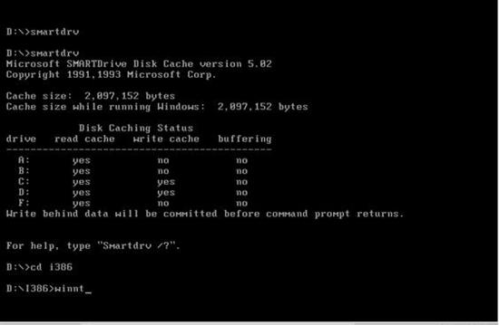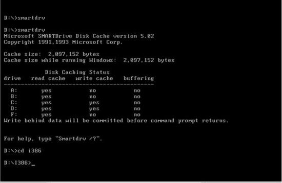 从网上下载的系统文件大部分是一个ISO文件,下载回来的ISO用WINRAR解压或用虚拟光驱,把里面的I386目录(只要I386)文件提取出来,复制到硬盘中,并将smartdrv工具也放在这个目录中,方便在DOS下时调用。