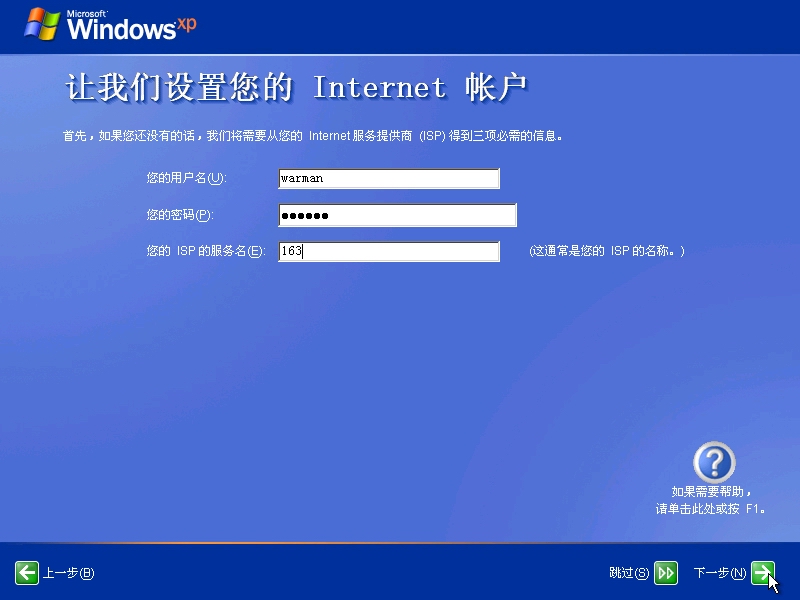 一般到了这里,我直接冷启动,就剩下了下面的设置帐号等过程。这样计算机就会自动生成一个超级管理员Administrator帐号了。要求设置系统,按下一步继续!