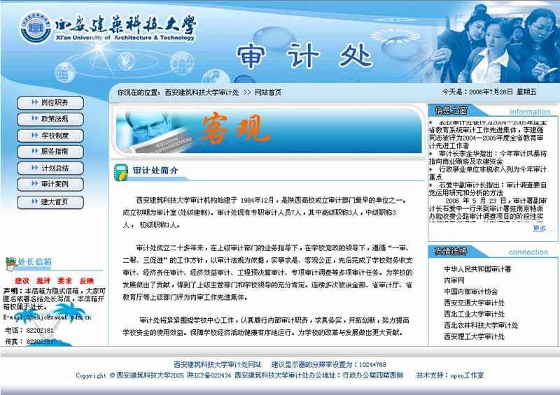 西安建筑科技大学审计网站:我在此网站中主要承担程序部分,此网站采用php+mysql数据库,实现了动态维护等功能。