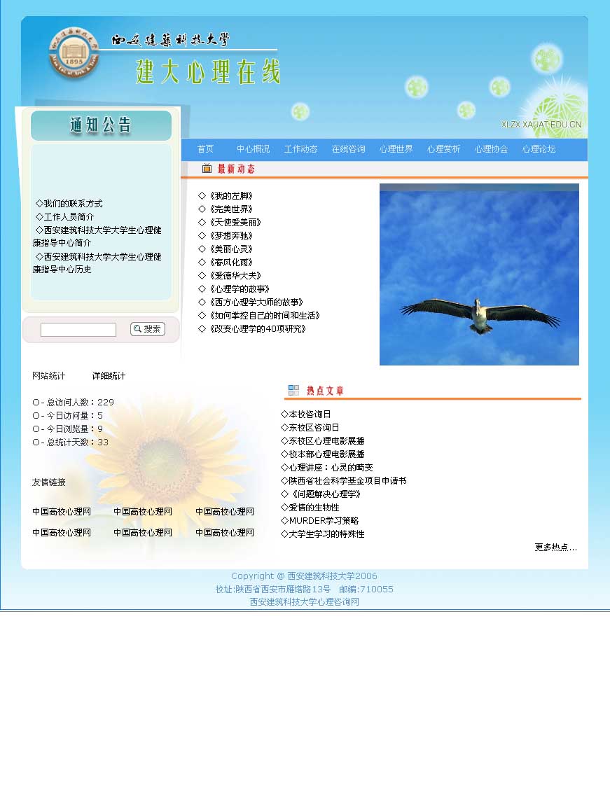 建大心理咨询中心网站:在此网站中我主要承担美工设计,张岭负责后台的设计。